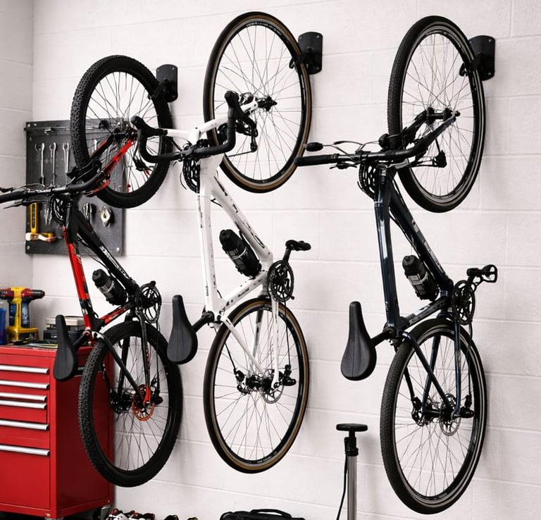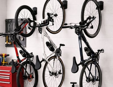 Keep bikes safe and out of the way with easy-to-use wall-mounted racks.